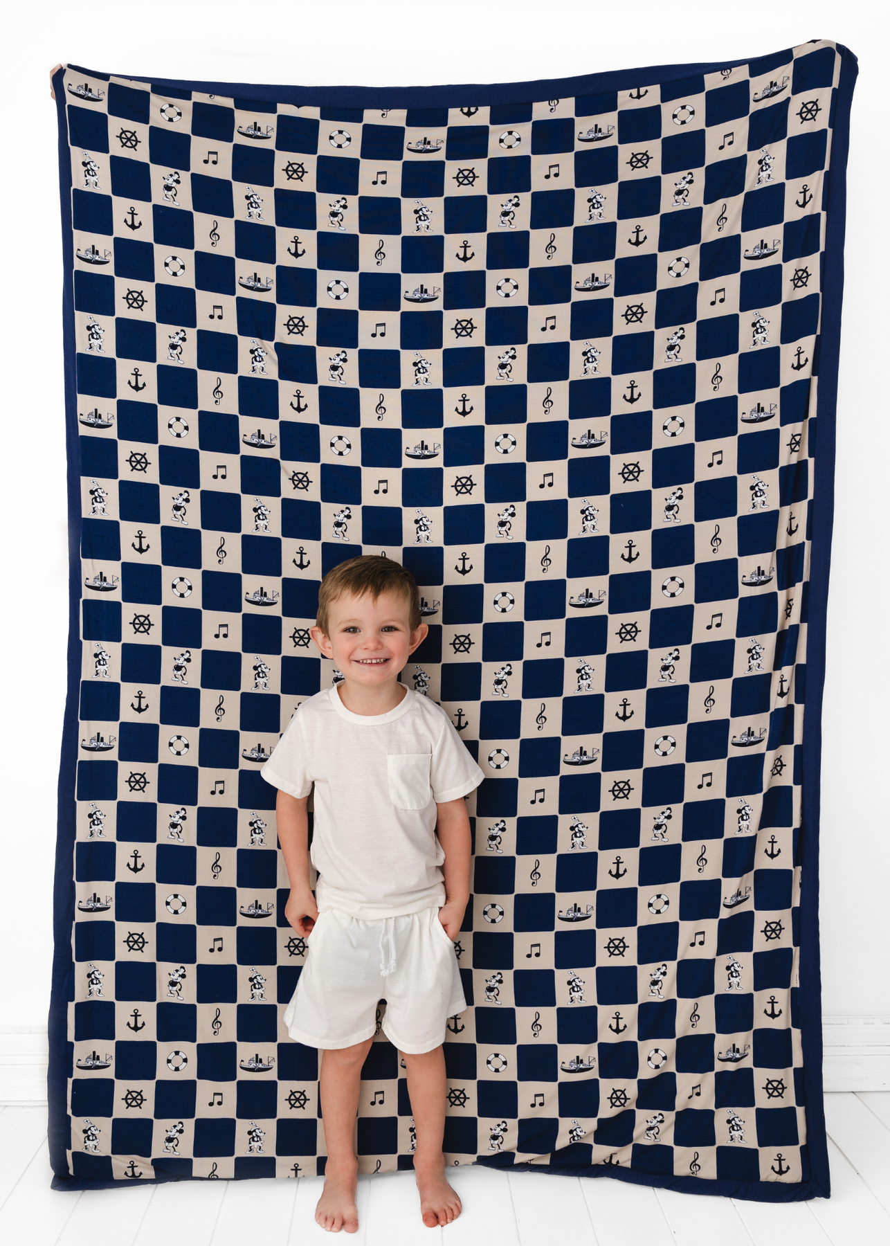 Our Steamboat Willy buttery soft blanket is oversized at 49x69 inches and made from our luxuriously soft bamboo fabric that you all have come to know and love. Stuffed with 100% polyester to add a fluffy filling, this blanket is thick and luscious while also having that cool-to-the-touch feel that the outer bamboo layers provides.