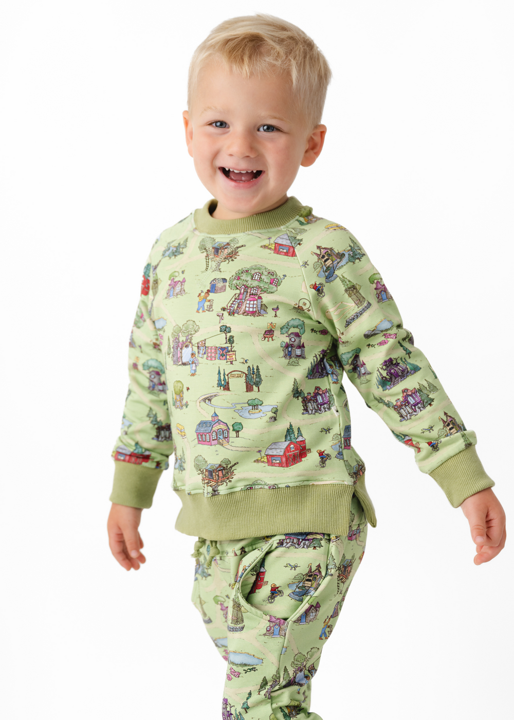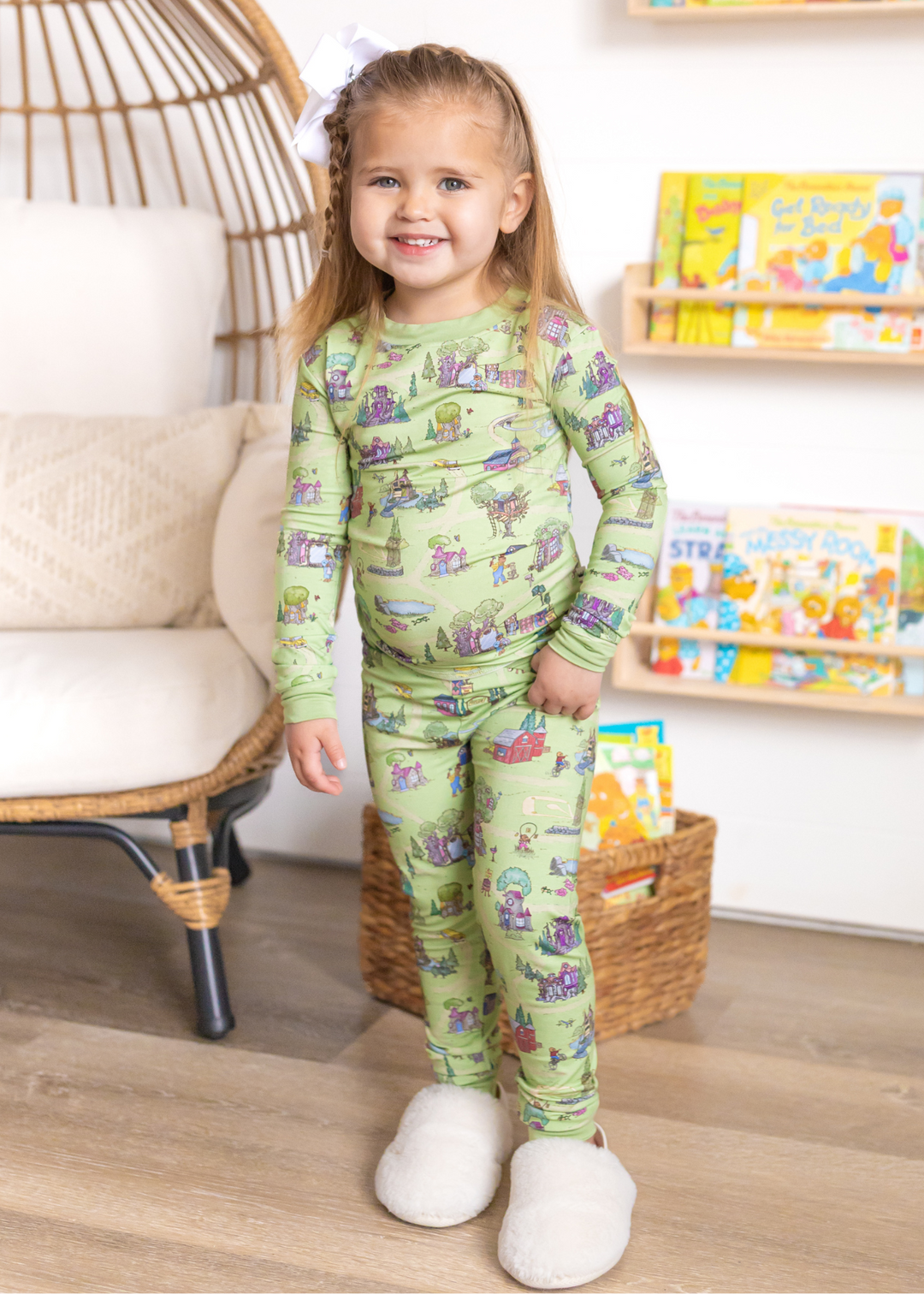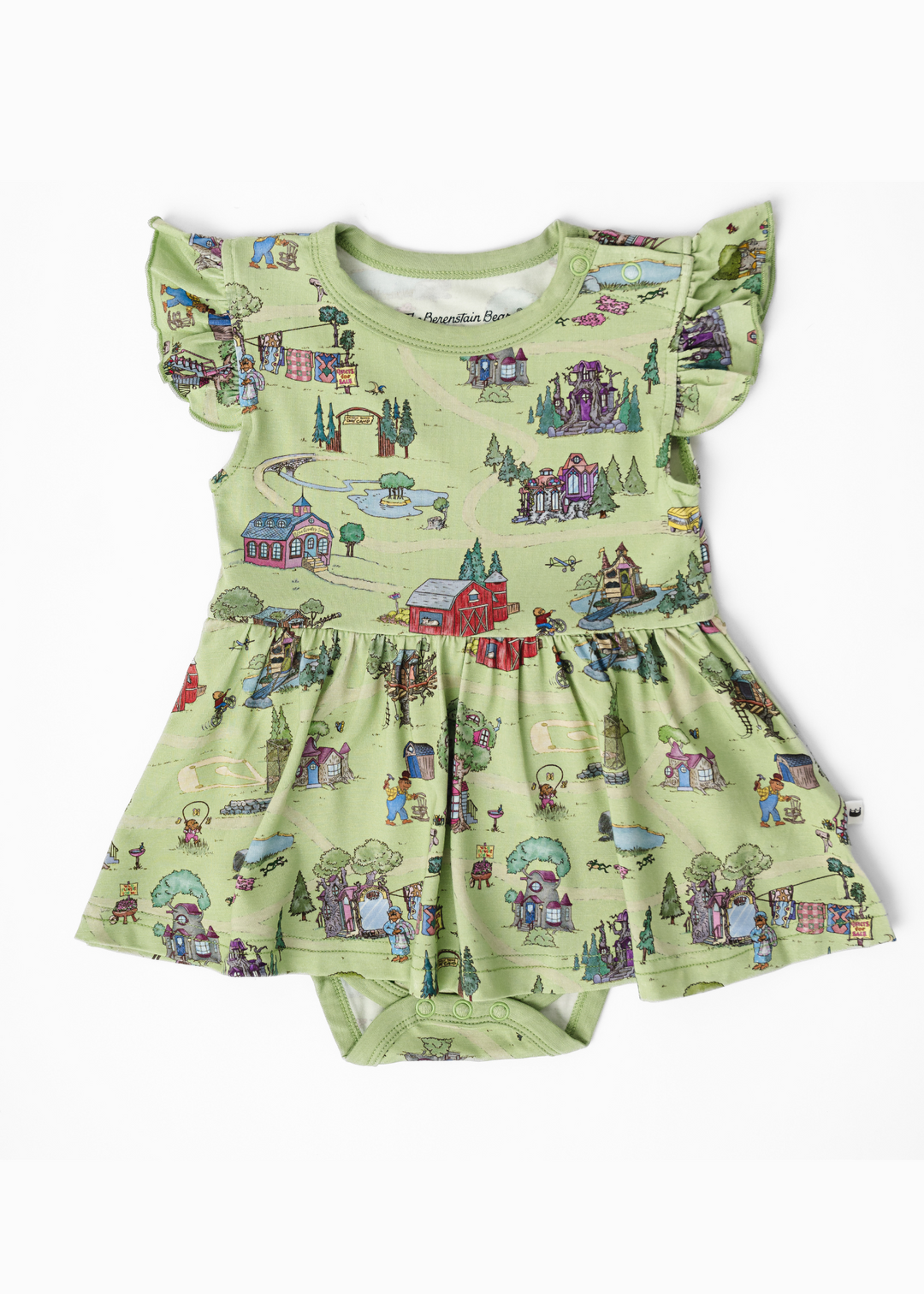 In Little Crowns & Capes' signature map style, the Bear Country Collection is an extremely detailed scene featuring iconic locations within the Berenstain Bears® world. Journey along with Mama, Papa, Brother, and Sister Bear at various places like the Bear Family Treehouse, Bear Country School, Mama's Quilt Shop & more!