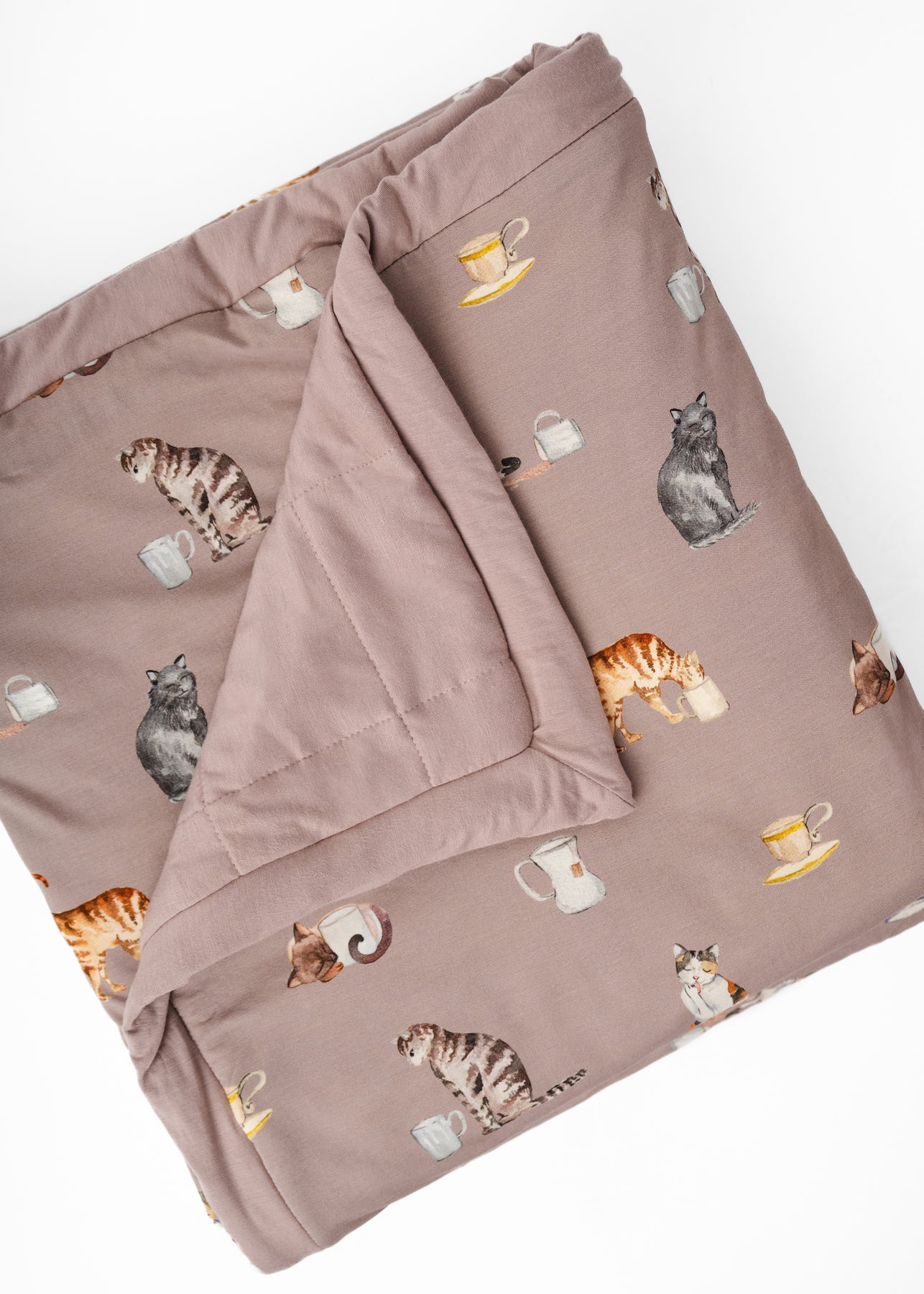Our Cats and Coffee buttery soft blanket is oversized at 49x69 inches and made from our luxuriously soft bamboo fabric that you all have come to know and love. Stuffed with 100% polyester to add a fluffy filling, this blanket is thick and luscious while also having that cool-to-the-touch feel that the outer bamboo layers provides.