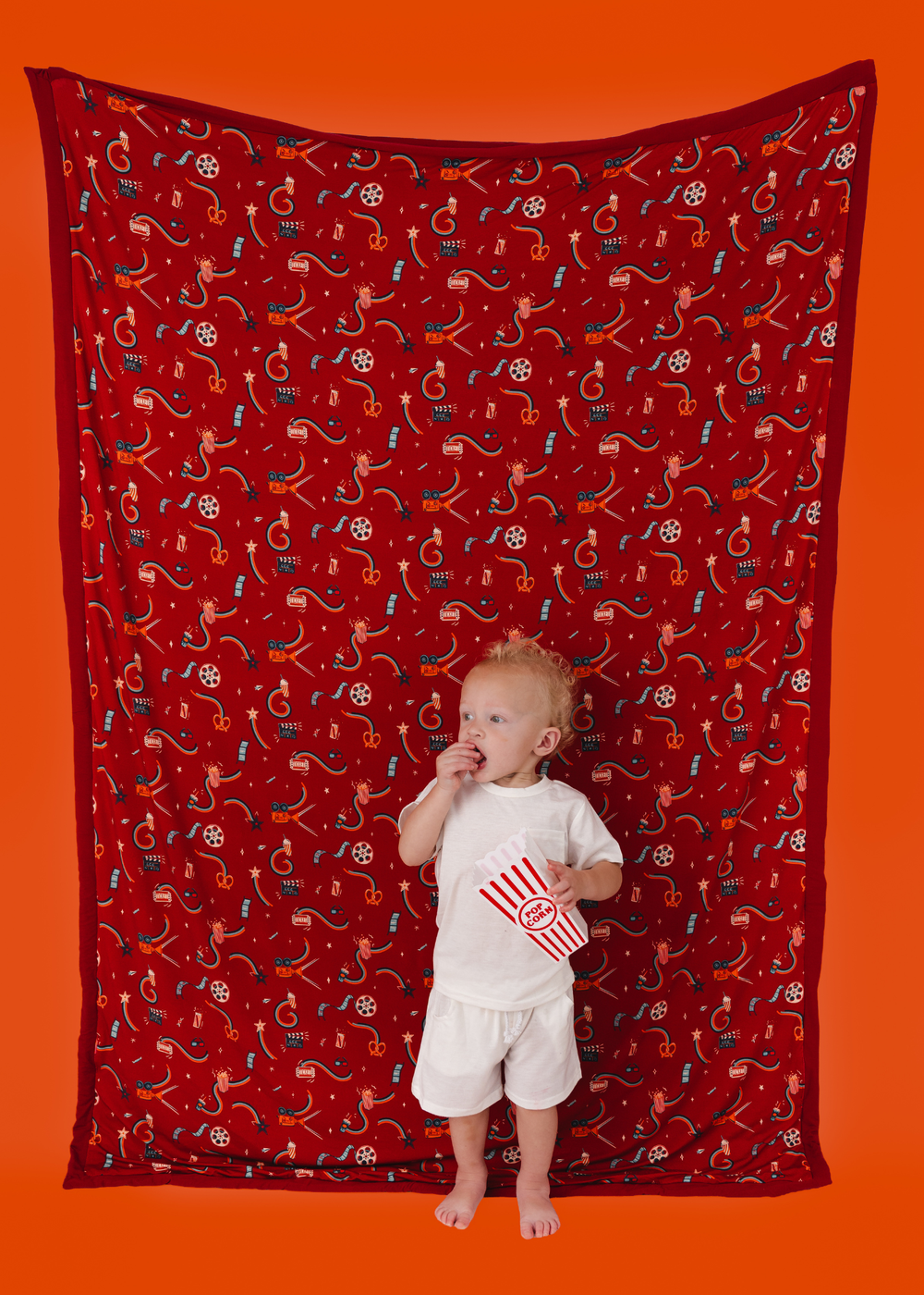 What goes perfect with a family Movie Night? Pajamas to match the occasion! This collection has that vintage movie theater vibe with some iconic movie props and must-have snacks!