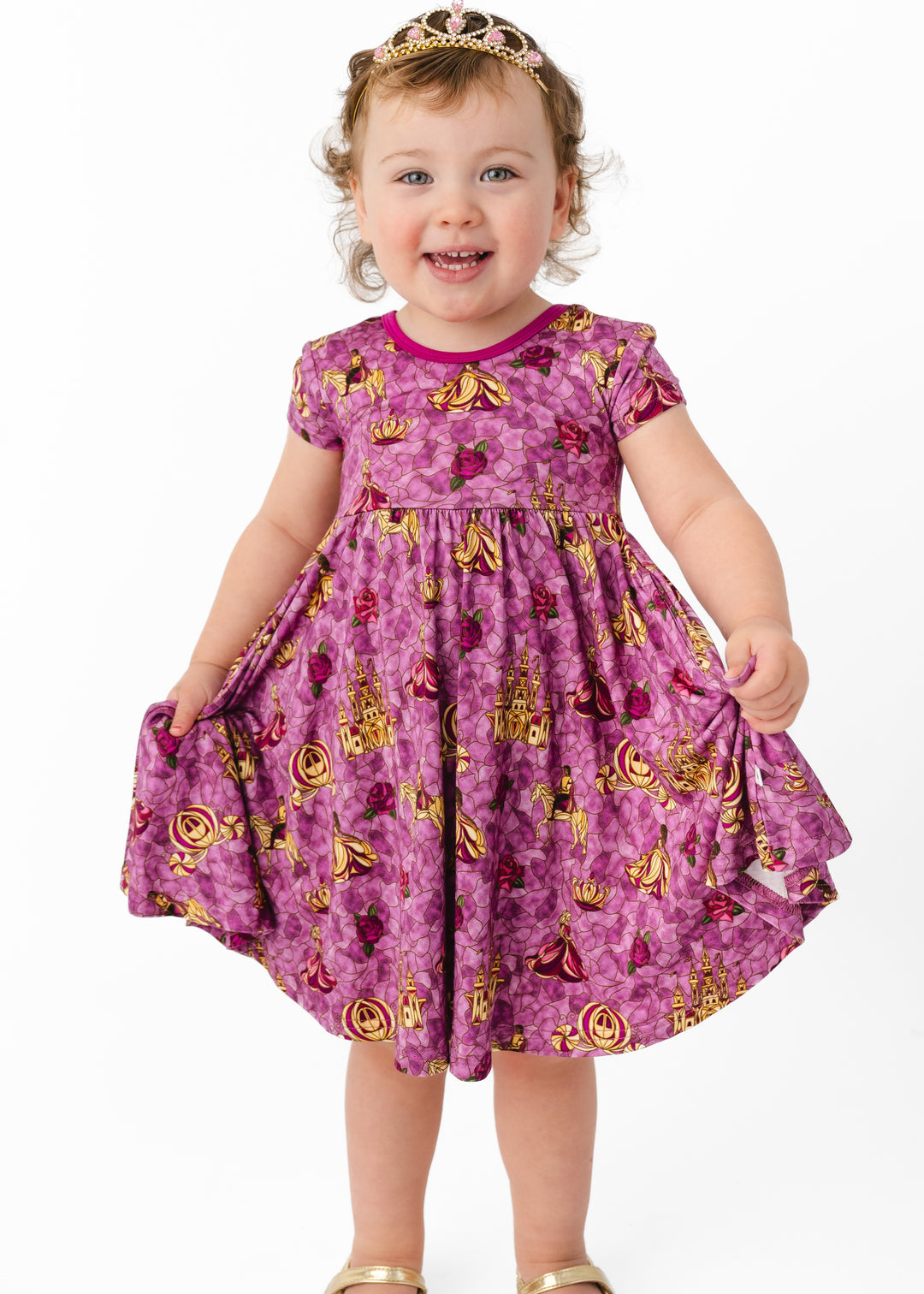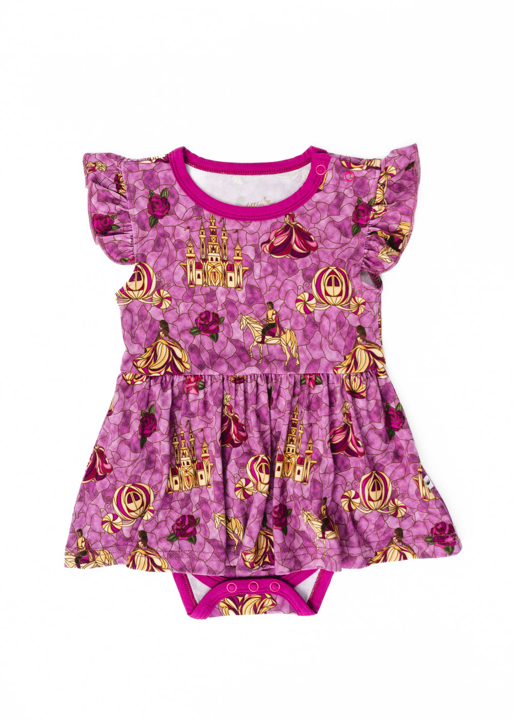 Introducing one of our most unique and dazzling designs we’ve ever made! Royal Stained Glass is our stunning purply-pink glass pattern features pops of yellows with princesses, a prince and his trusty steed, roses, a crown, a castle and a carriage. This collection is perfect for your little princess!
