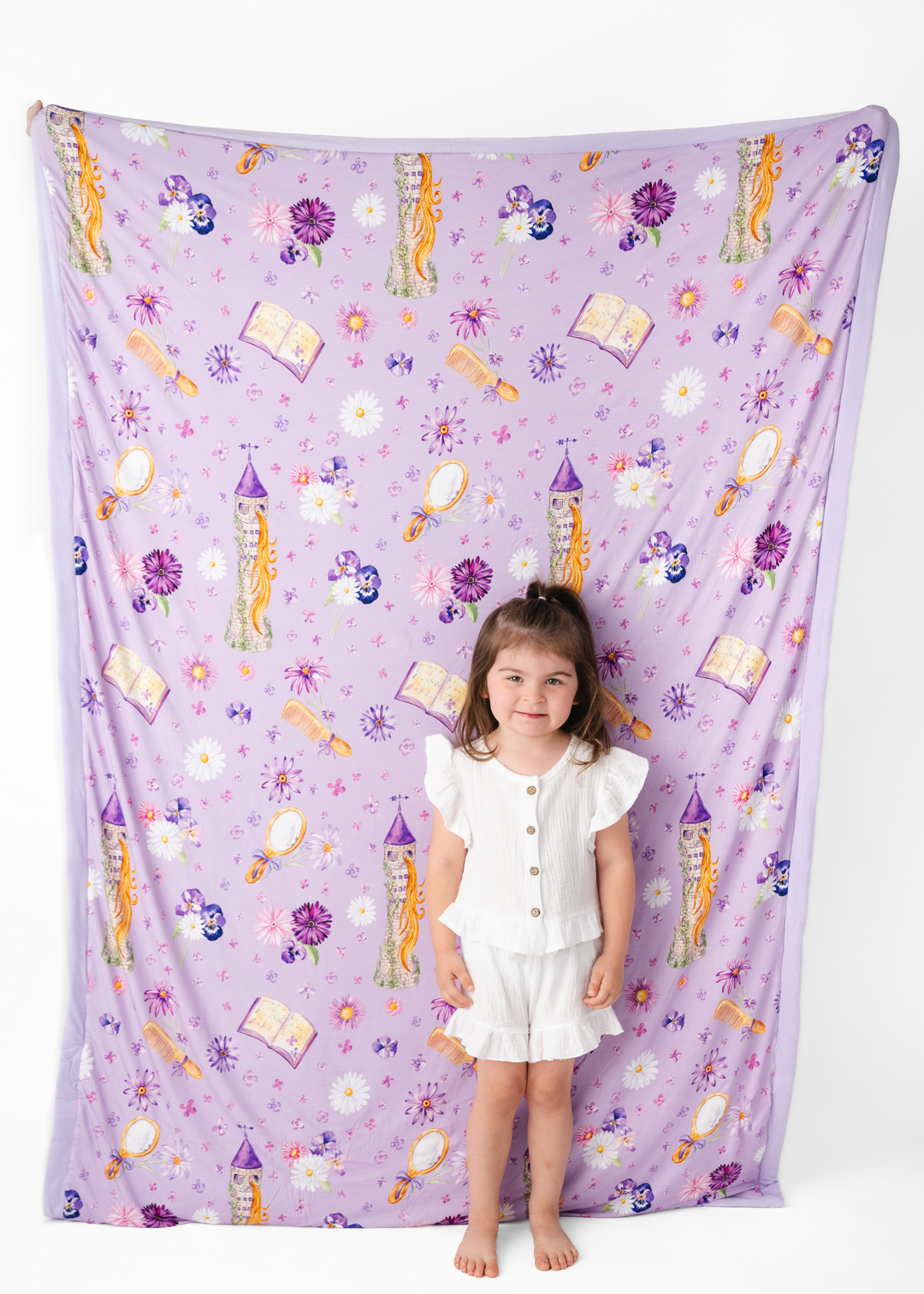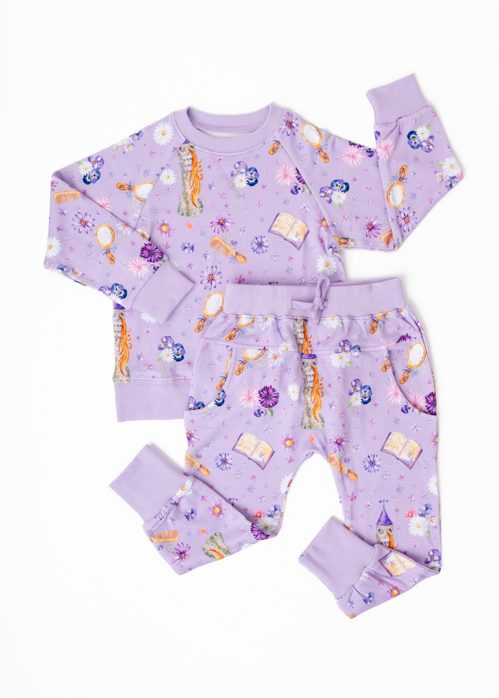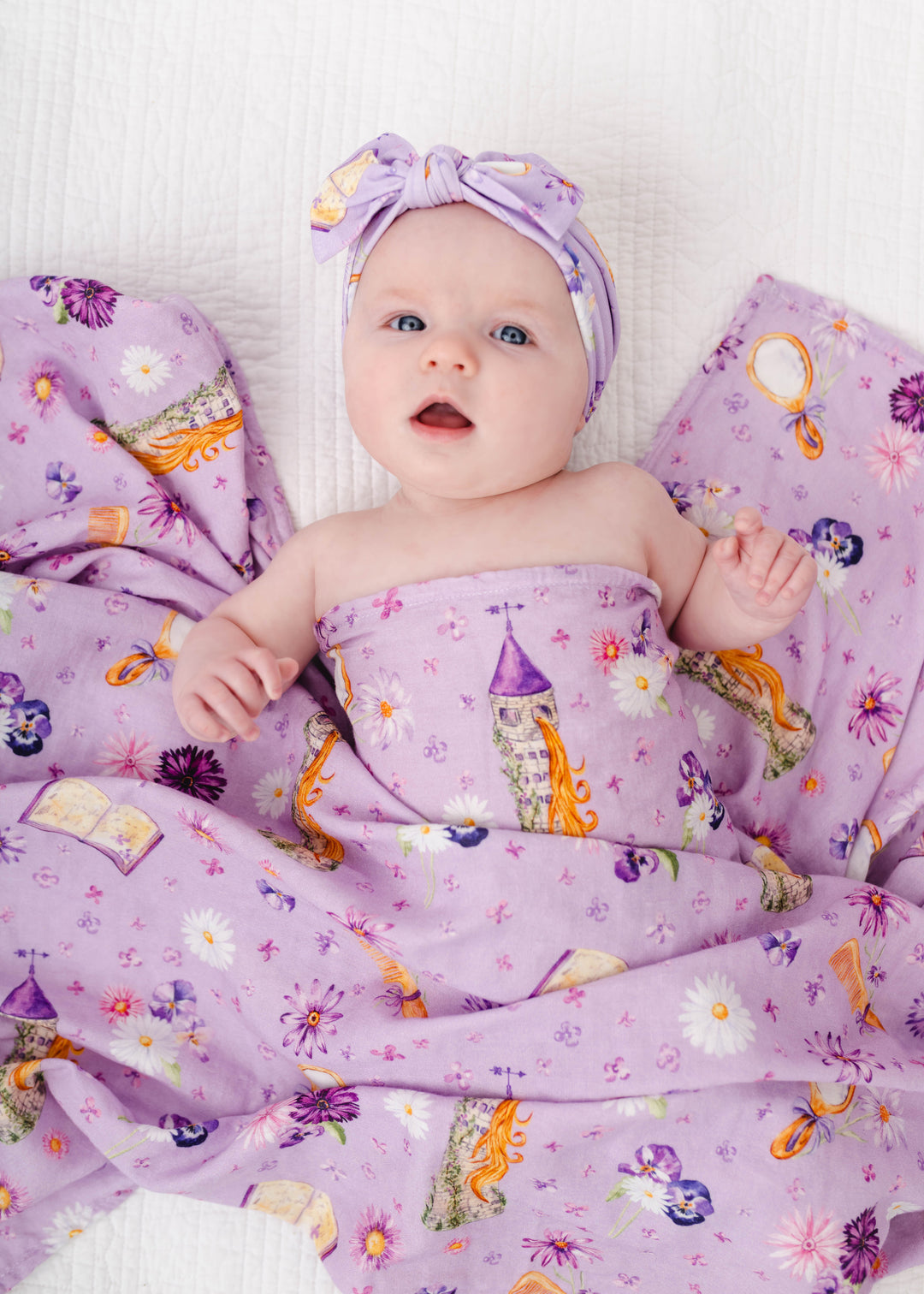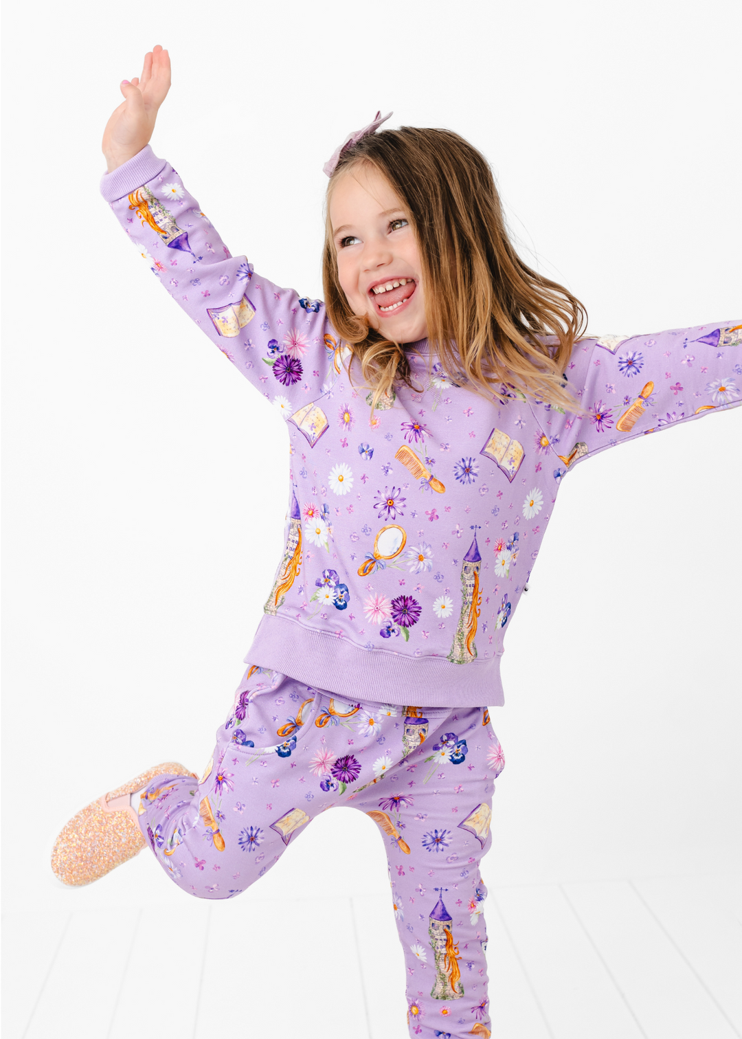 Our enchanting Rapunzel collection is the perfect addition to your little one's closet! This water color design has whimsical flowers, magical books and other enchanting items all throughout. Choose from your favorite products in this collection including bamboo baby sleepers, two piece jammies, shortie rompers, baby and toddler dresses, sleep sacks, and more! This gorgeous collection is made from our signature buttery soft bamboo fabric that's perfect for sensitive skin and so cooling. Create the perfect newborn outfit, nursery, or baby shower gift with our Rapunzel Collection!