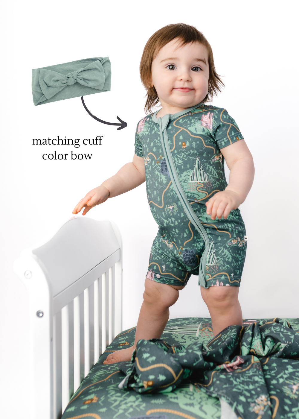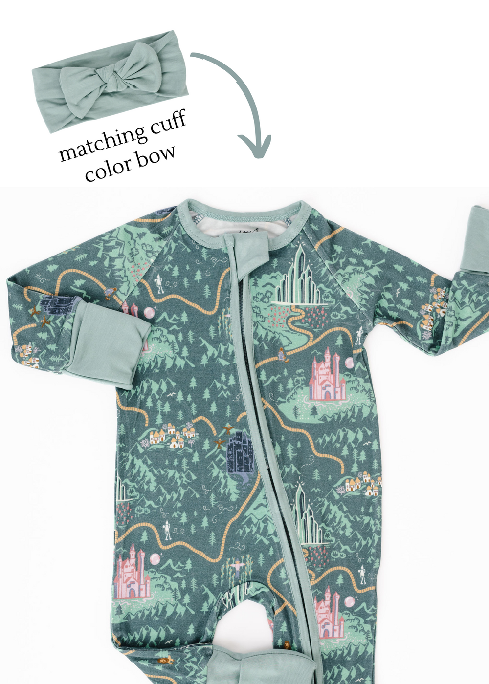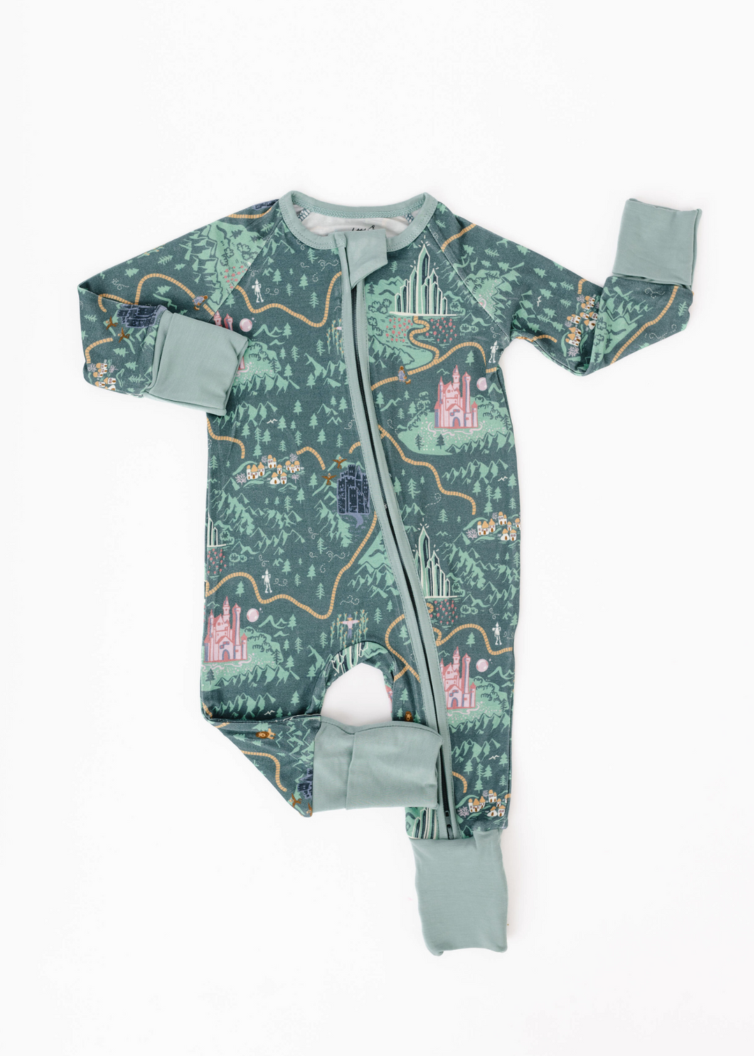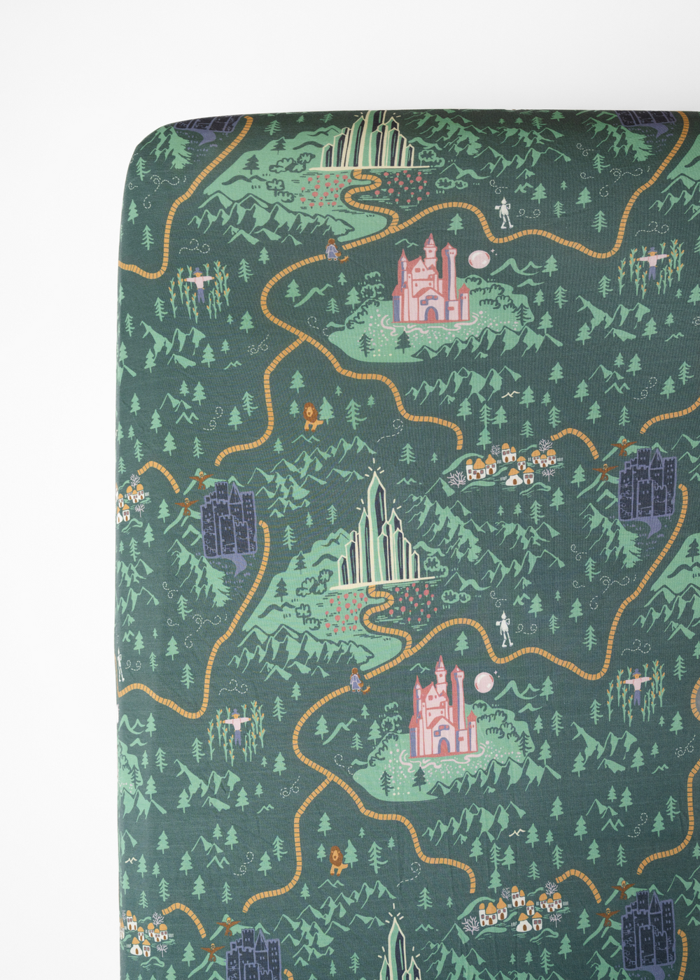 Emerald City features vibrant green tones accentuate this magical landscape where friends become family, dreams come true, and we are reminded that there is no place like home. Follow the yellow brick road winding throughout our signature seamless pattern and see if you can spot Dorothy, Toto and their companions on this epic adventure that is so close to all of our hearts!