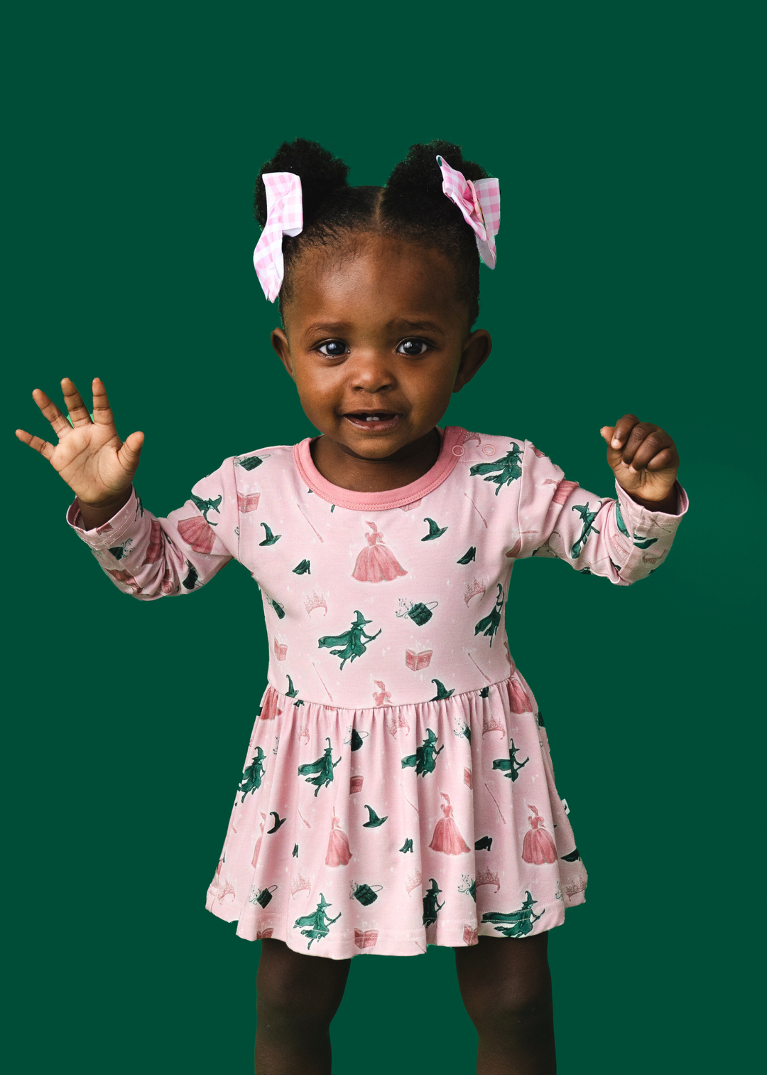 Good Witch Bad Witch features color-coded elements with the Good Witch of the North represented by a perfectly pink crown, magic wand, and spell book! The Wicked Witch of the West is represented by a heavy contrast of a deep green witch’s hat, magic shoes, and bucket.