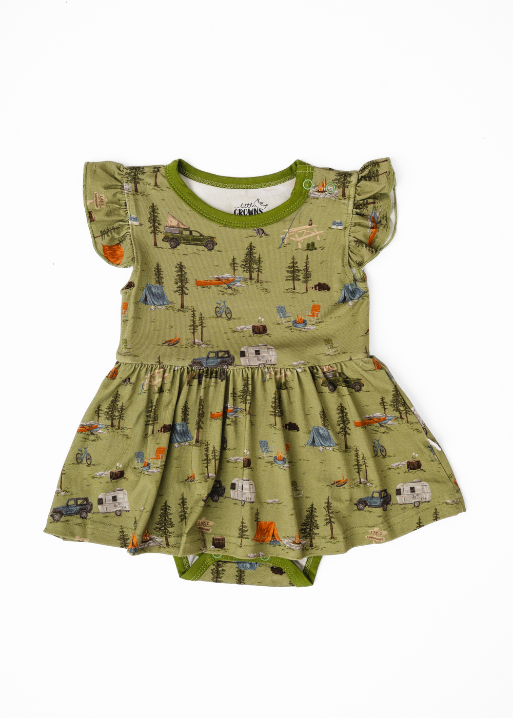 Say hello to our Camping Baby Dress! Crafted from buttery soft bamboo, this darling dress has two snaps at the shoulder and three at the crotch for easy diaper changes. The flutter sleeves provide a cute, feminine touch!