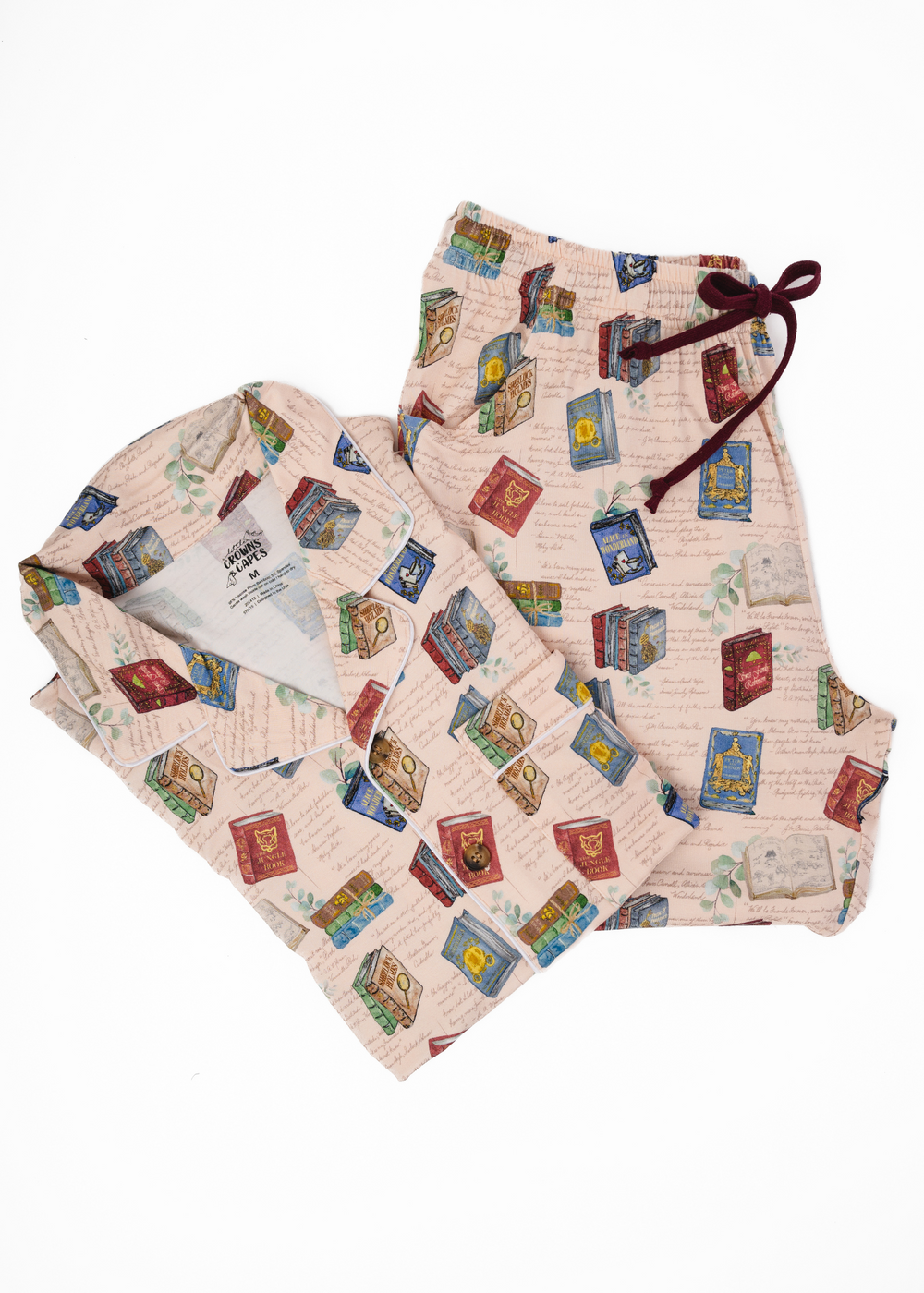 Now entering sleep mode. Match your little one's with our NEW Classic Books adult pajama sets! Wind down in this bamboo pant and matching long-sleeve top with a chest pocket, notch collar, and decorative piping.