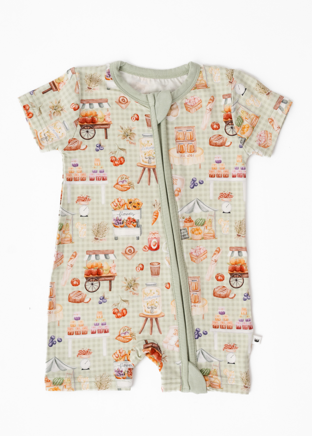 Kick up the cuteness in your little one's wardrobe with our Farmer's Market Shortie Romper! This super soft zippered romper is the perfect pick for adorable daywear - featuring buttery soft bamboo fabric and double zippers for convenience. Get ready for spring and summer playtime - this one's a must have!