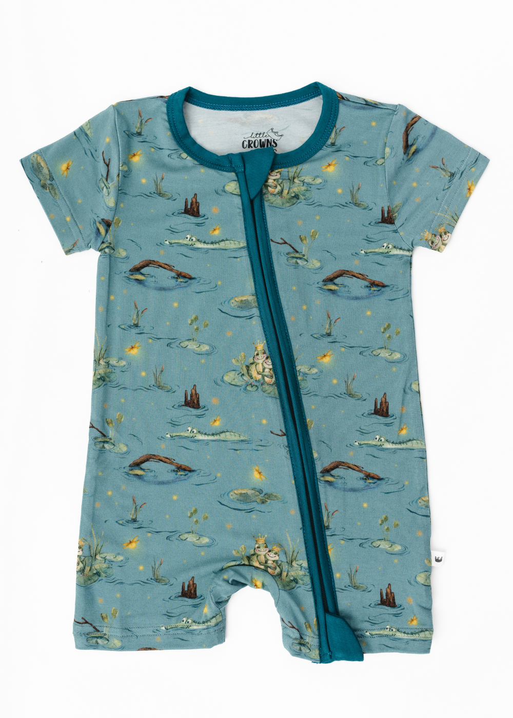 Kick up the cuteness in your little one's wardrobe with our Frog Prince Shortie Romper, perfect for fans of Princess & the Frog! This super soft zippered romper is the perfect pick for adorable daywear - featuring buttery soft bamboo fabric and double zippers for convenience. Get ready for spring and summer playtime - this one's a must have!
