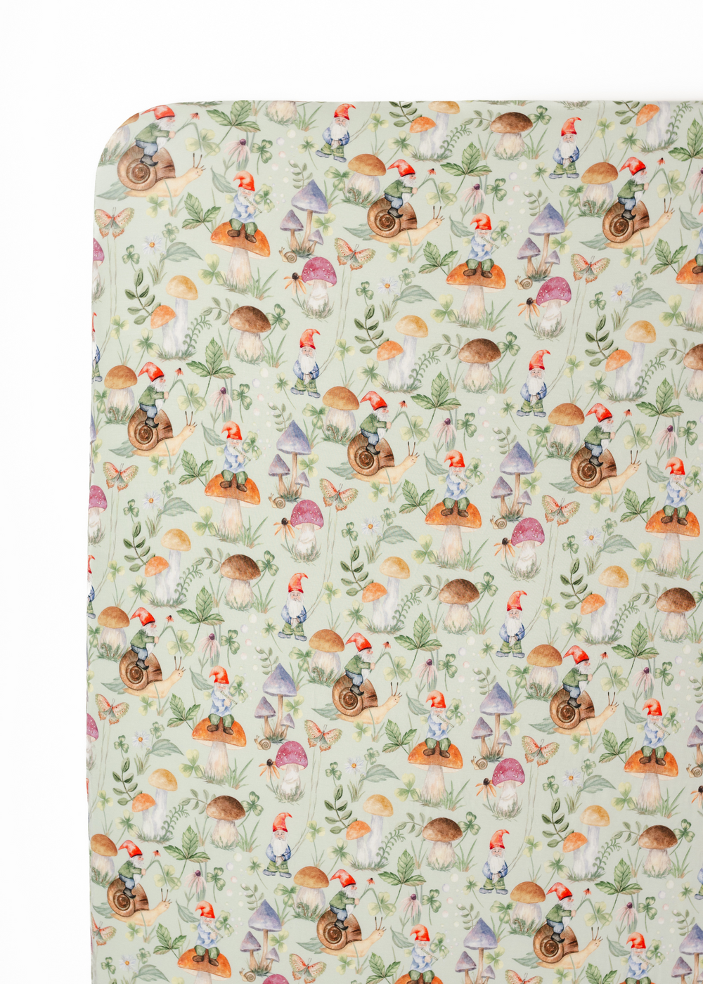 This beautiful Gnomes crib sheet is super soft, sensitive skin-friendly, and amazingly stretchy!