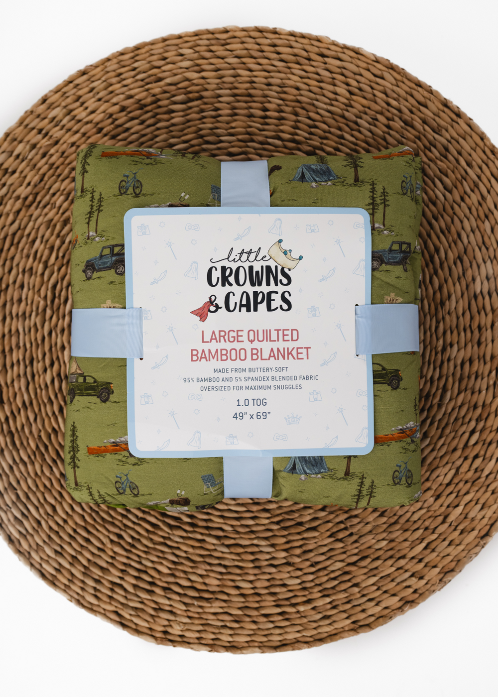 Our buttery soft Camping blanket is oversized at 49x69 inches and made from our luxuriously soft bamboo fabric that you all have come to know and love. Stuffed with 100% polyester to add a fluffy filling, this blanket is thick and luscious while also having that cool-to-the-touch feel that the outer bamboo layers provides