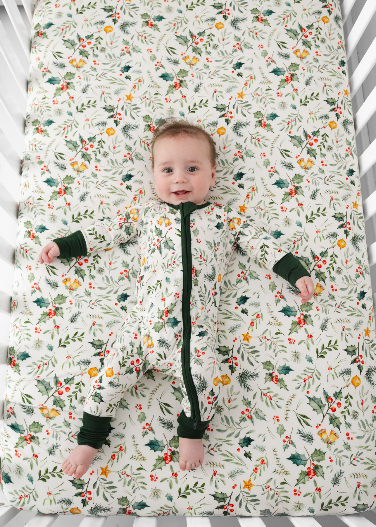 Sleep soundly with our Holly Jolly Christmas Crib Sheet! This beautiful crib sheet is crafted from 95% bamboo 5% spandex. Super soft, sensitive skin-friendly, and amazingly stretchy, it’s a no-brainer for sweet (dreams) slumber!