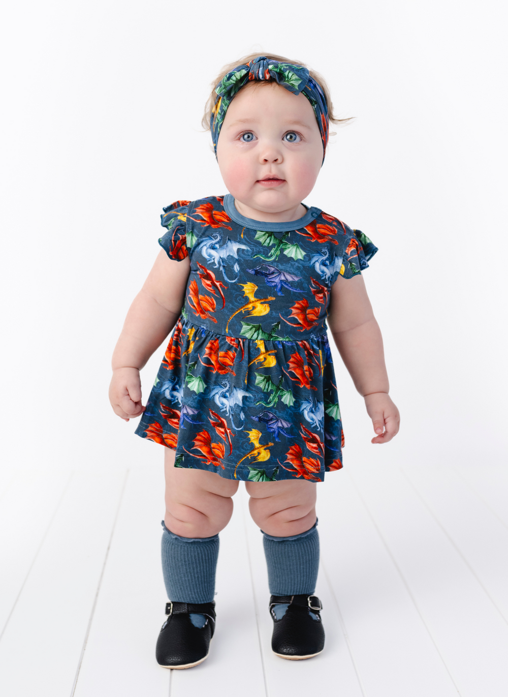Say hello to our new watercolor Dragon Flight Baby Dress! Crafted from buttery soft bamboo, this darling dress has two snaps at the shoulder and three at the crotch for easy diaper changes. The flutter sleeves provide a cute, feminine touch!