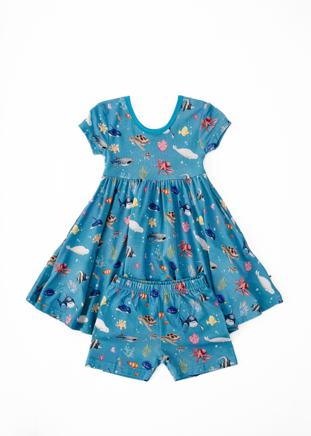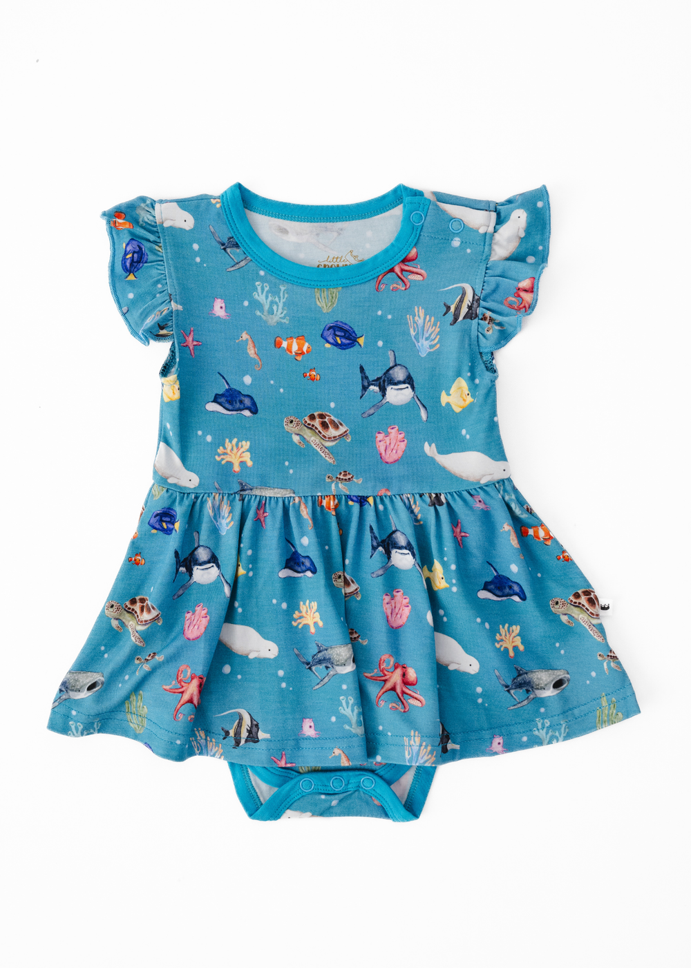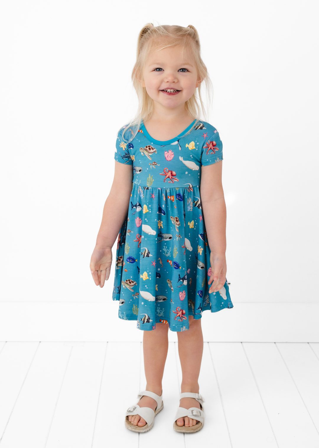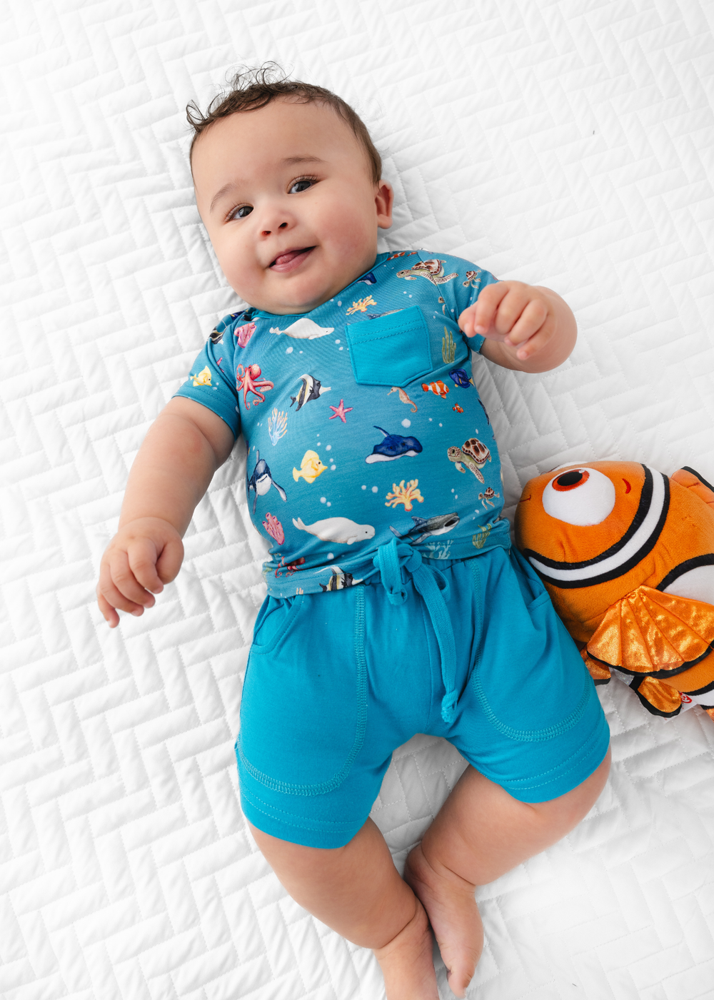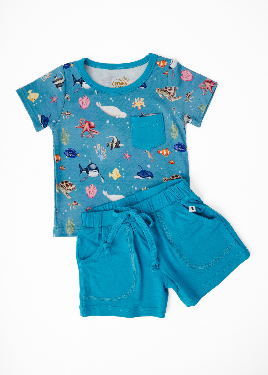 'Fish are Friends' collection is a fan favorite back from the vault! This gorgeous and vivid print features watercolor style drawings of all the familiar species of fish & friends you know and love: clownfish, regal blue tang, moorish idol, yellow tang, spotted eagle ray, octopus, sea horse, star fish, sea turtles, whale shark, beluga whales, and great white sharks!