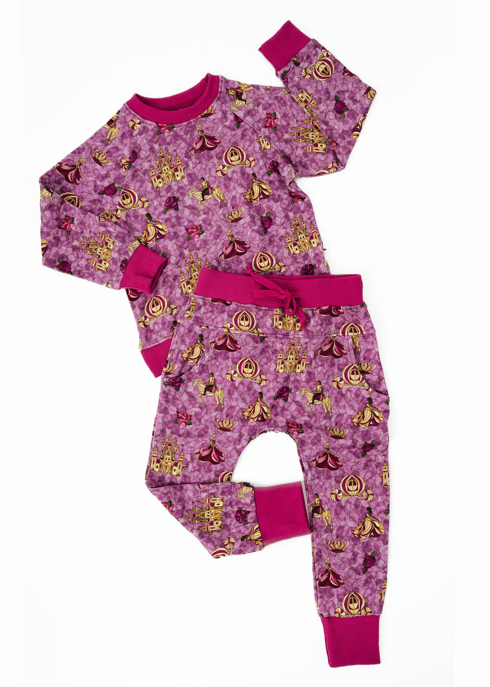 Introducing one of our most unique and dazzling designs we’ve ever made! Our stunning purply-pink glass pattern features pops of yellows with princesses, a prince and his trusty steed, roses, a crown, a castle and a carriage.