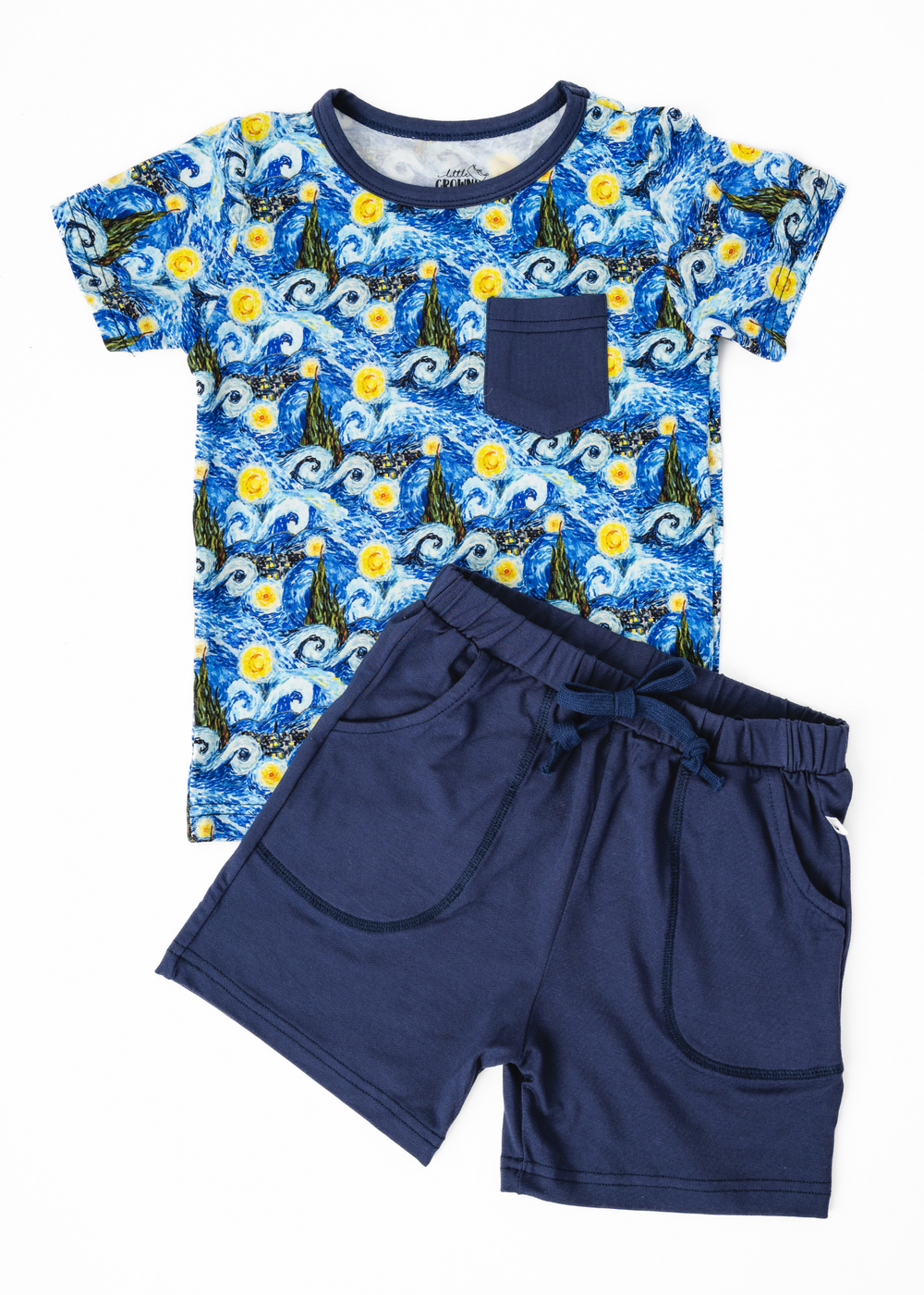 Get ready for some fun in the sun with our Starry Night Summer Short Sets! Made from bamboo fabric, these cute and casual sets are perfect for both playtime and daywear. The decorative drawstring and elastic waistline are comfortable for playtime, and the pocket tee shirt adds that extra cuteness factor.