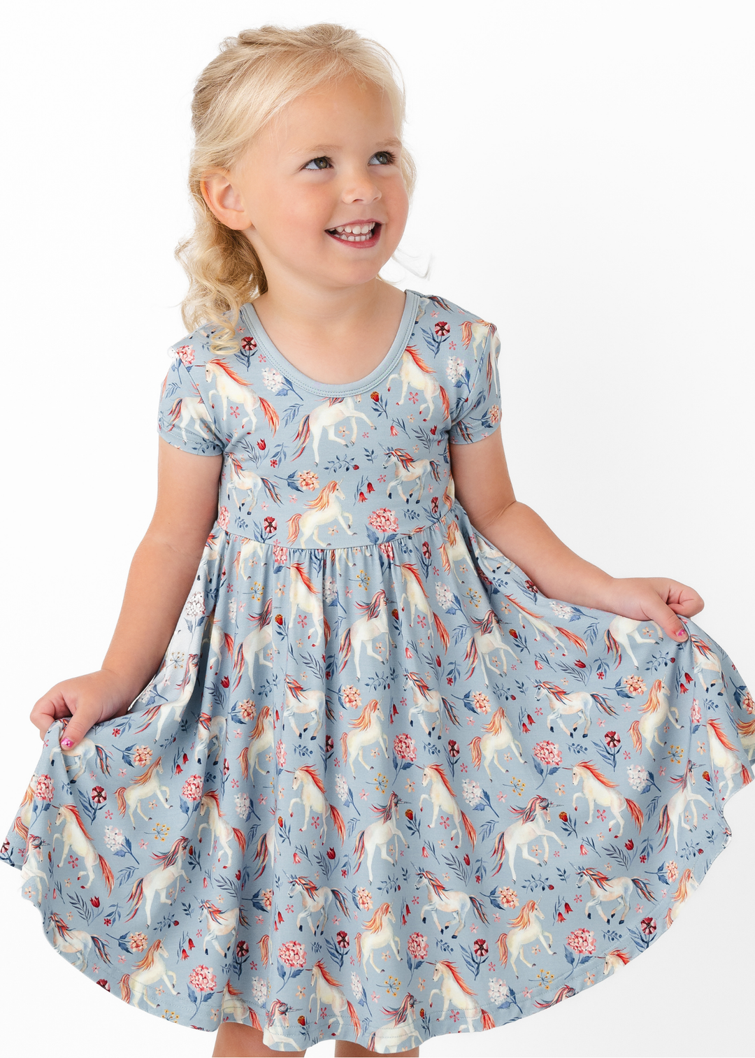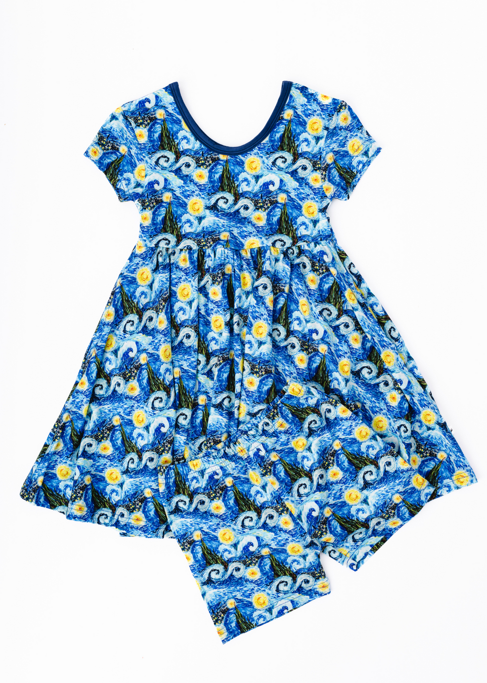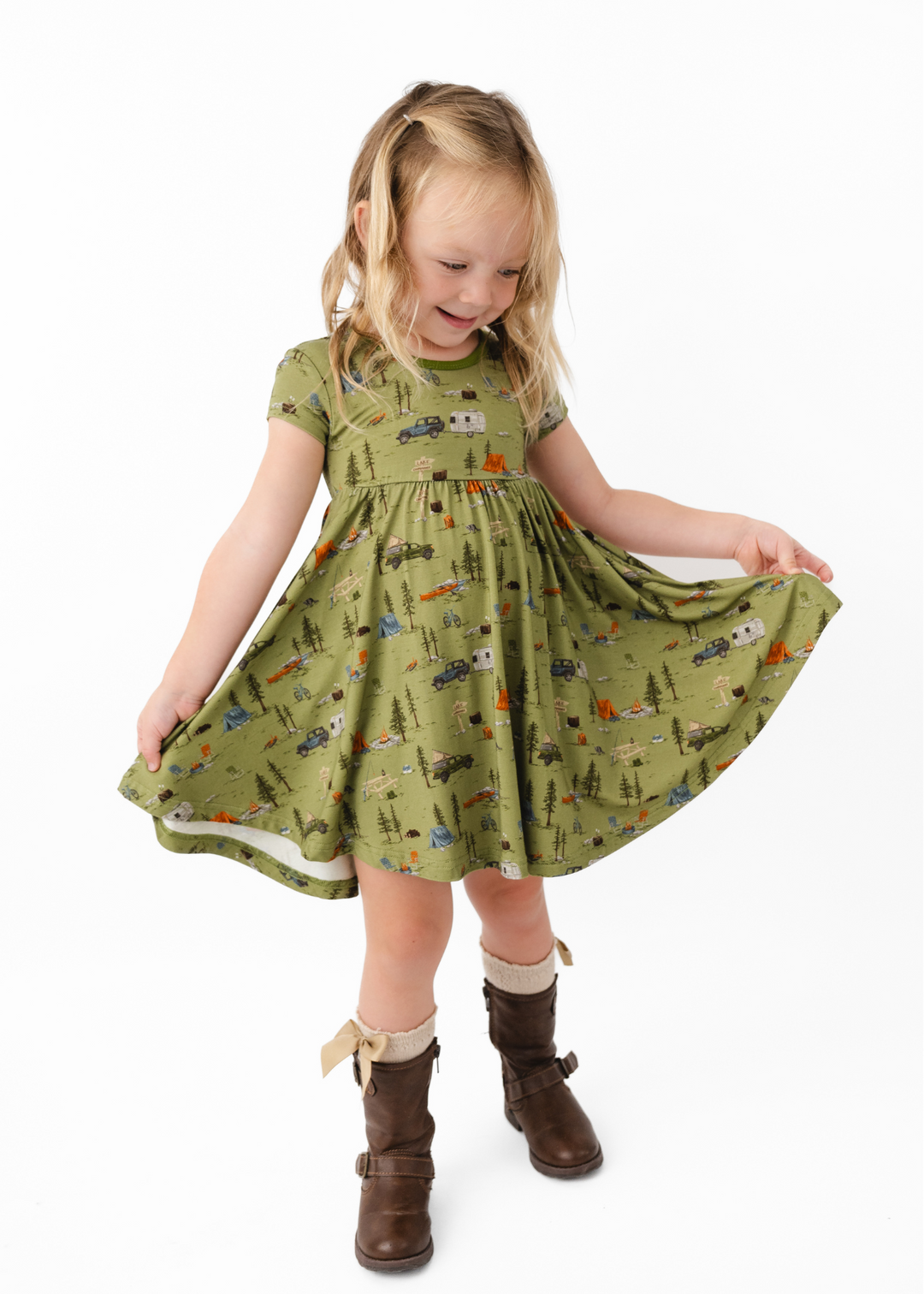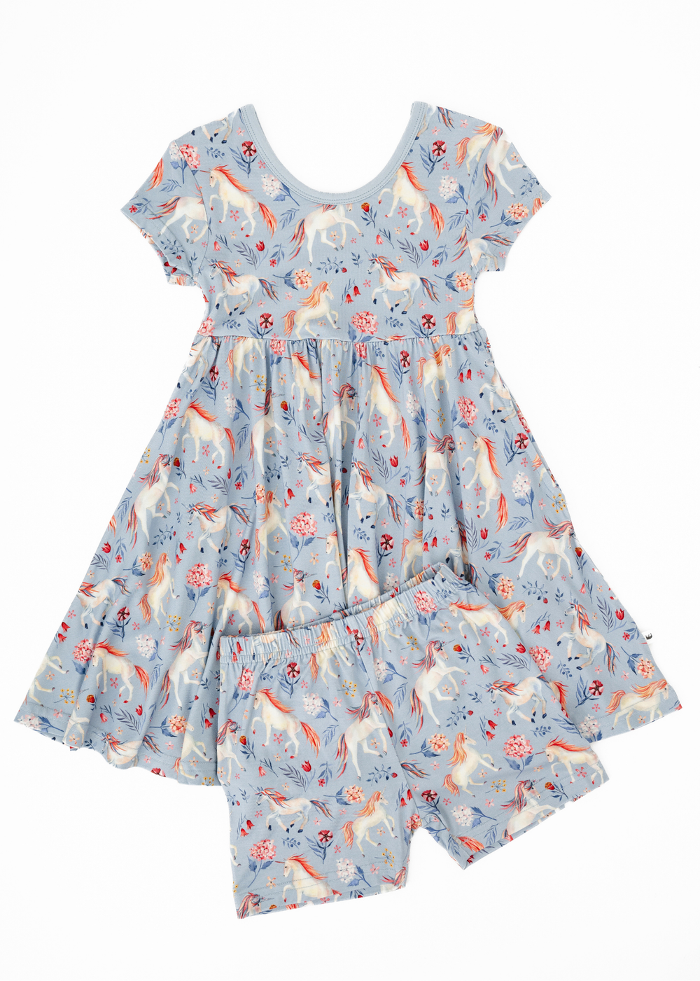 Our twirl dresses are perfect for your little girl. Crafted from buttery soft bamboo, it's made to last and provide all-day comfort. The double-lined bodice and matching free biker shorts provide modesty coverage and allow for worry-free fun. Plus, pockets add a fun, practical touch.