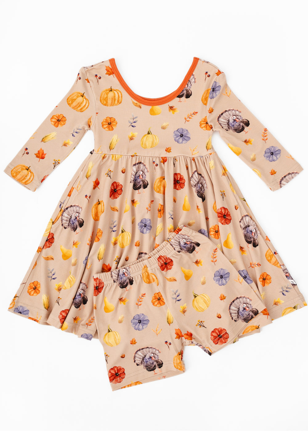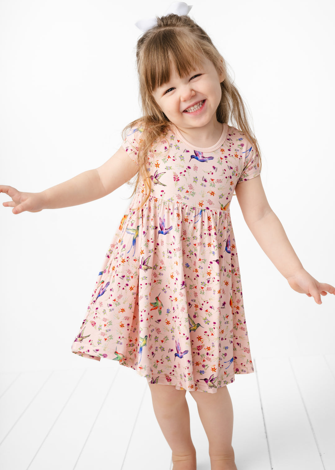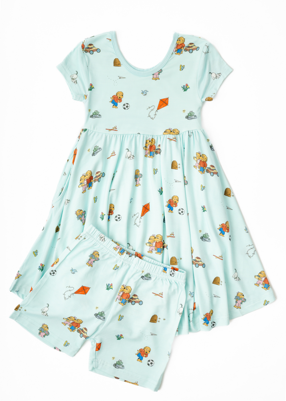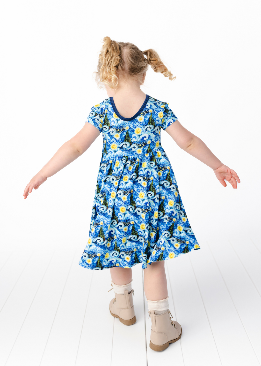 Our twirl dresses are perfect for your little girl. Crafted from buttery soft bamboo, it's made to last and provide all-day comfort. The double-lined bodice and matching free biker shorts provide modesty coverage and allow for worry-free fun. Plus, pockets add a fun, practical touch.